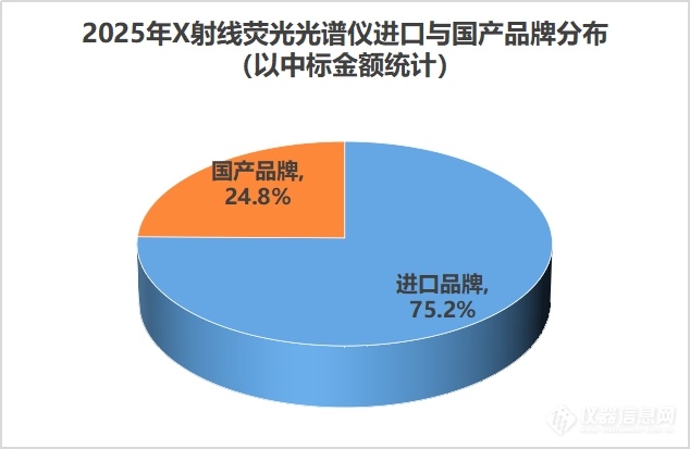 从中标金额这一指标来看,目前XRF市场仍以进口品牌为主导,进口品牌占比高达75%。