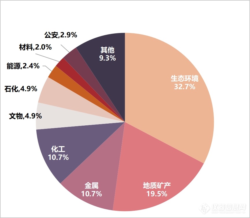从行业分布来看,生态环境、地质矿产、金属、化工、文物、石化、能源、材料等行业是XRF仪器的采购主力。这一些行业涉及大量原材料成分分析与质量控制环节,需求持续旺盛。其中,地质矿产、金属、化工、文物、石化、能源等领域的企业更倾向于采购高单价仪器;而生态环境、公安等单位则主要以采购单价较低的仪器为主。